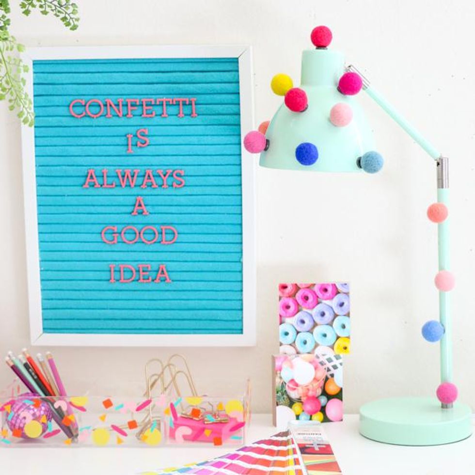 12. Color Pop: Here, magnetic pom poms add some zest to a simple desk lamp. If you love the rainbow but don't know where to start, these bring instant color without the commitment. (via A Kailo Chic)