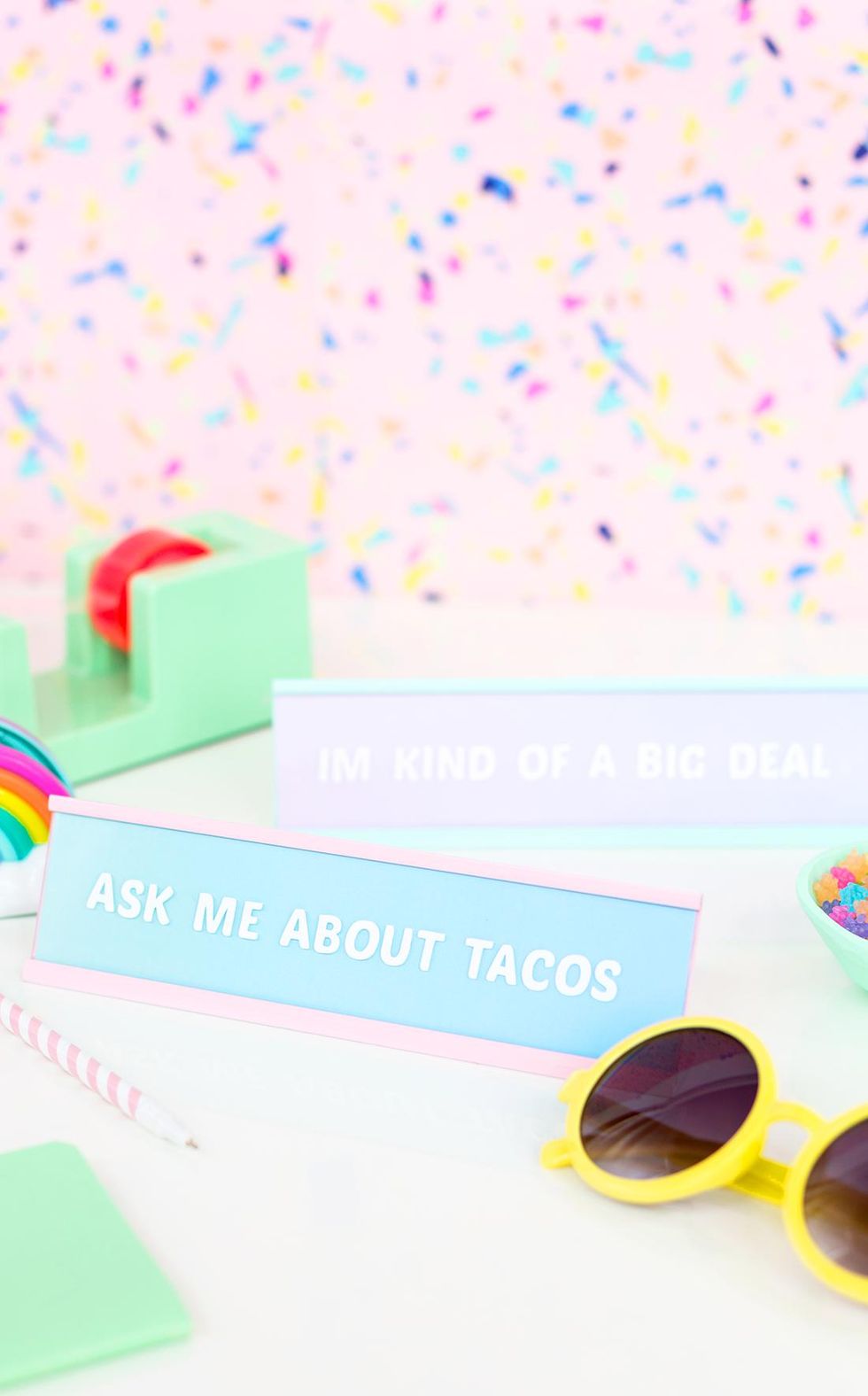 19. Add Some Fun: Nameplates are on trend right now, and they're a great way to add an element of whimsy to an otherwise serious space. You can also keep a confetti drawer to help celebrate your wins, but that's your call. (via Aww Sam)