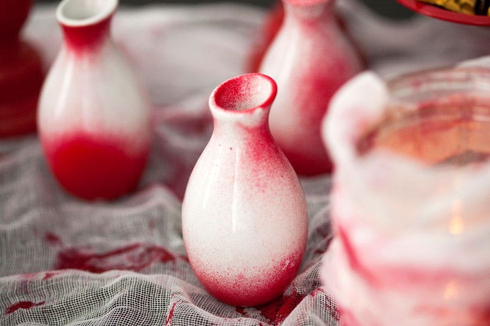 3. Blood-Splattered Vases: Last, some adorable bud vases turned seriously dark.