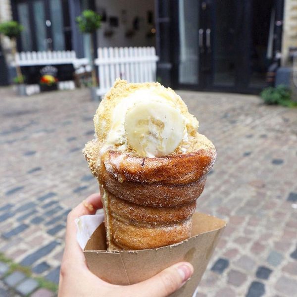 The newest menu addition only became available today, but it’s already putting waffle cones to some serious Instagram shame. While there appear to be a number of flavor options to choose from, one Instagrammer describes her treat as “a banoffee crone with vanilla ice cream, banana and salted caramel sauce” (a “banoffee” is an English dessert pie made from bananas, cream and toffee from boiled condensed milk). Ya, wow okay. Not jealous of that at all. Nope. Not even a little bit.