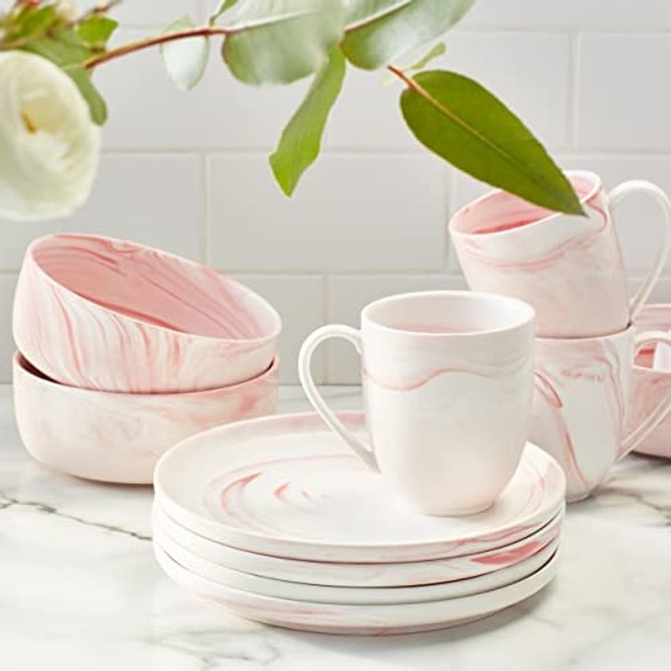 Style doesn't stop at just the furnishing, it includes the plates and silverware. This pretty Marble Porcelain Dinnerware Set brings the subtle pink color to the tablescape for a photo-ready dinner party.