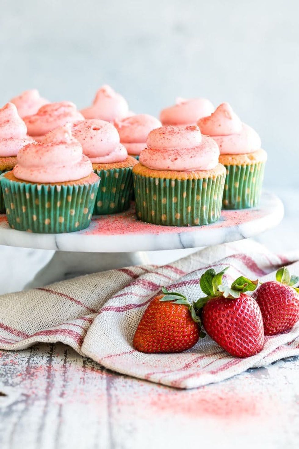 These strawberry cupcakes are a rosy dream come true, with luscious fruit purée in the batter and a classic cream cheese frosting infused with freeze-dried strawberries for a burst of berry flavor. Just writing about them makes my mouth water!