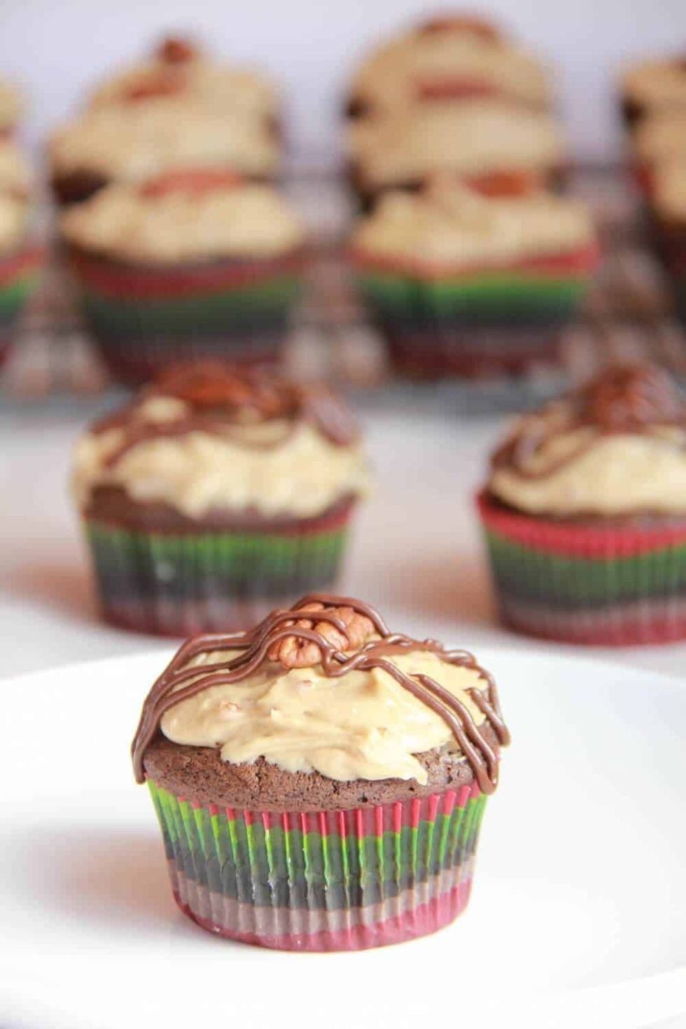 Chocolate Bourbon Cupcakes with Butter Pecan Frosting