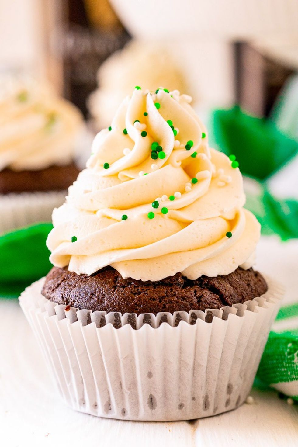 St. Patty's Day is a little far, but it doesn't hurt to plan ahead, right? These tender chocolate cupcakes are infused with the rich flavors of Guinness and Jameson Irish whiskey, and they're filled with a decadent chocolate ganache. The finishing touch is a silky Baileys buttercream frosting, making them the perfect not-too-boozy and not-too-sweet dessert to celebrate the holiday.