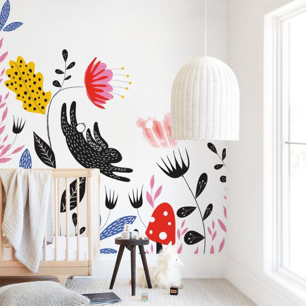 The accent wall gets a burst of playful print in a collection of wall murals from Minted. We're especially fond of this garden print.