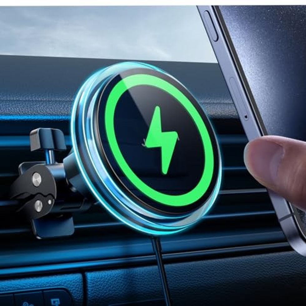 Since its launch, this Magsafe Car Mount has undergone three significant upgrades in response to reviewer feedback. It now offers improved heat distribution to prevent overheating, faster charging capabilities, and enhanced magnets to keep phones securely in place. The mount clamps onto both vertical and horizontal vents, and there's even a smart chip inside that protects overall battery health.