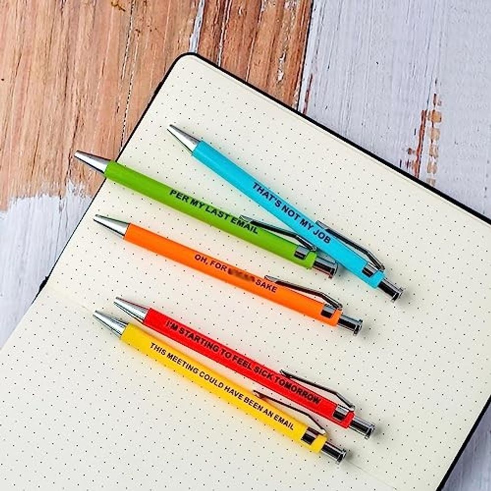 Any corporate millennial will appreciate these vulgar office humor pens that say what we're all thinking, like...that's not my job.