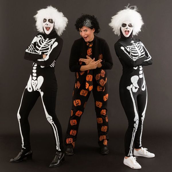 If you've yet to see SNL's David S. Pumpkins skit, then TBH, you haven't really lived. In fact, the goofy character (played by none other than Tom Hanks) is returning for an animated half-hour special on October 28. So, it's time to educate yourself on the funky wonder that is this Halloween icon, and after you're done laughing, you're gonna wanna get to crafting. Scroll on for step-by-step instructions on how to DIY your own hilarious David S. Pumpkins and Skeleton B-Boy sidekick costumes.