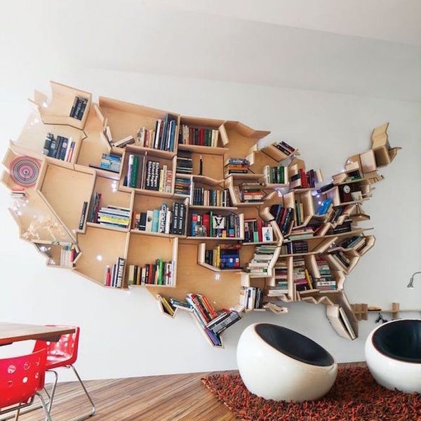10. Creative bookshelf: If you really feel like impressing your guests, then find or make an awesome bookshelf like this one. Not only will this step up your living room’s decor game, but it will make an impression on everyone who visits. (via Will Pryce)