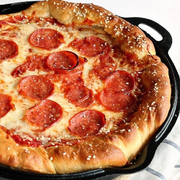 Happy National Deep Dish Pizza Day! That, in addition to the fact that you've been so dedicated to Whole 30 dinner recipes, means that by the time your cheat day rolls around you're ready for a BIG ol' slice of pizza (or three). Grilled pizza is phenomenal, but we're thinking deep dish pies are going to be the go-to for cheat day. If you really feel like making that naughty meal worth your while, whip up a dessert pizza to munch on afterward… you *won't* be sorry. For now, just make sure you have a snack handy, because you're about to gawk at 19 of the thickest and cheesiest deep dish pizzas we could find.