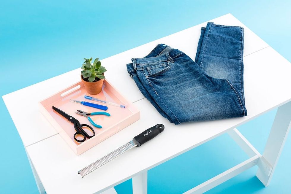 Distressing denim takes a little bit of time, but it’s worth it. This is a great project to work on with boring boyfriend-style jeans while you catch up on your latest Netflix binge.