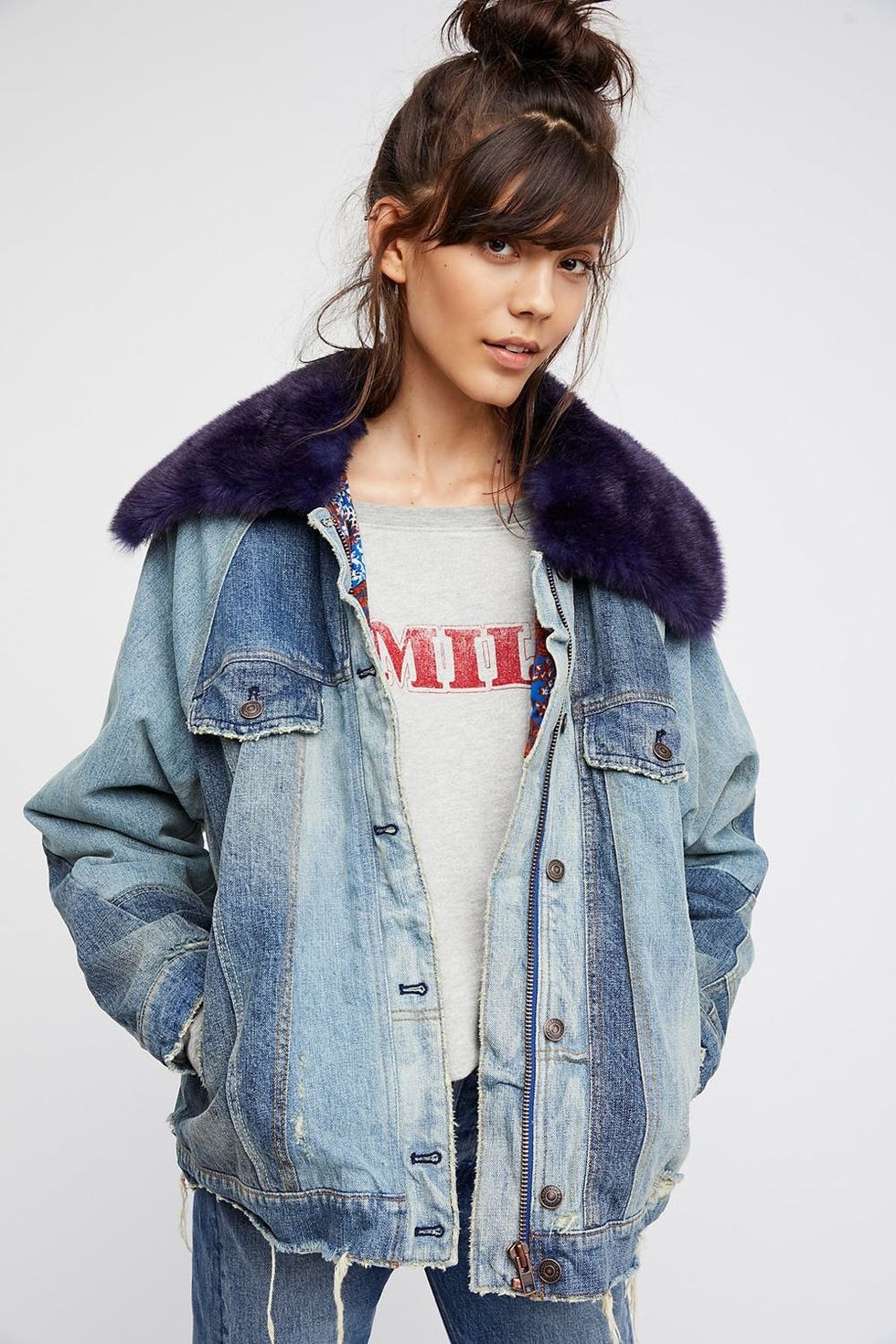 Front Row Shop Oversized Faux Fur Denim Jacket