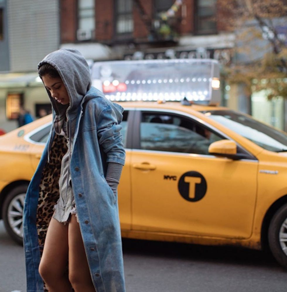 14. Here / Now Chloe Denim Jacket ($340): Be prepared to stop traffic in Here / Now’s hooded longline denim jacket (with satin leopard-print lining, natch) that looks just as striking with glittery Manolos as a head-turning pair of fluffy pom-pom-topped kicks.
