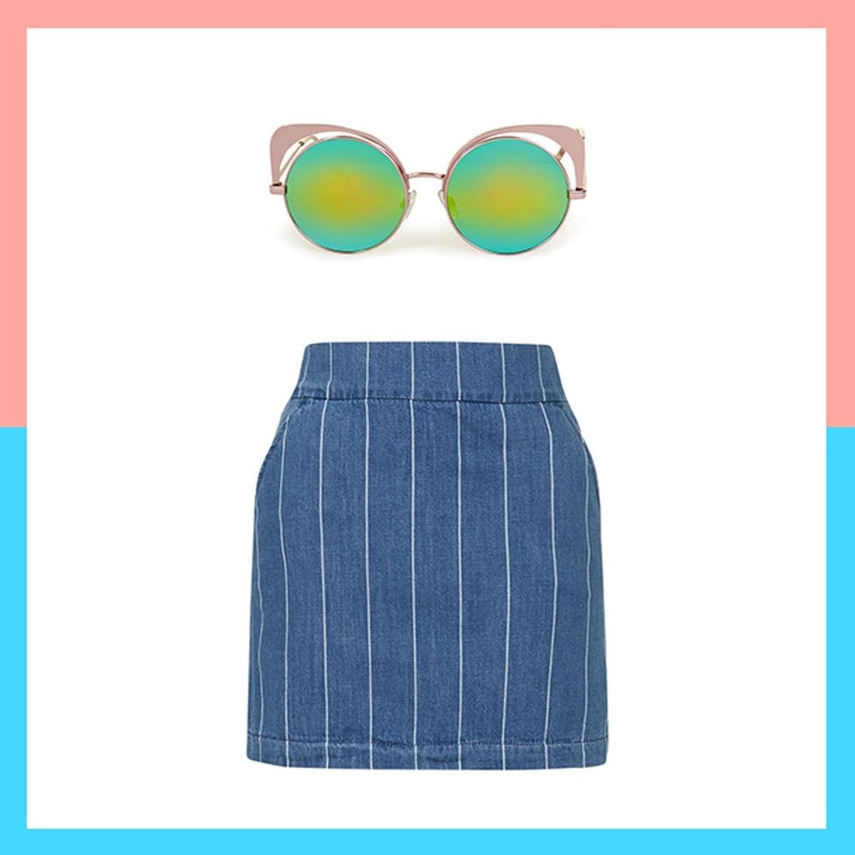 7. Topshop Metal Mirrored Sunglasses ($38) + Topshop Moto Stripe A-Line Skirt ($30): Blend in with the crowd? Not on our watch. Turn some heads with this athleisure-inspired getup that demands respect, consisting of a striped moto skirt and throwback mirrored sunnies. Come after-hours, top off your look with a satin bomber jacket and pull out the old-school kicks for major style cred.