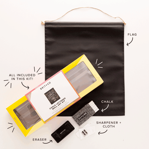 One of the best things about Brit + Co Kits is that they come with everything you need. The Chalk Lettered Wall Art Kit ($20) includes a chalkboard flag, some chalk, an eraser, a sharpener and a cloth.