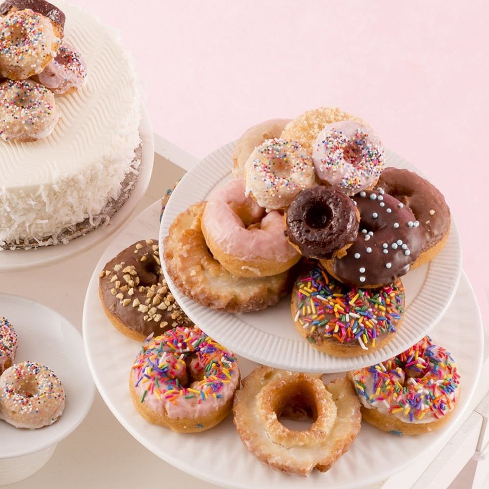 A donut cart doesn’t need to serve exclusively donuts! If you want a little more sweet variety, top a cake with the round little guys to keep it on theme.