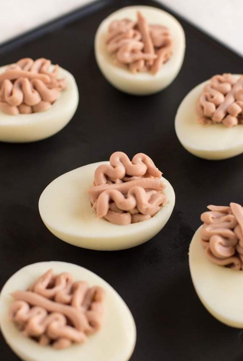 Left It to the Last Minute to Prepare Your Halloween Snacks? Deviled Egg Brains Are the Perfect Solution