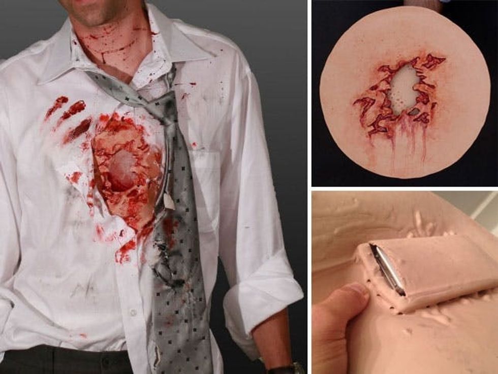 First, we’ve got the iWound. This latex pocket is designed to hold your smartphone against your heart, and the videos on the matching app include a beating heart, snakes, maggots, and a tarantula made to look like it’s crawling out of your chest. Yikes.