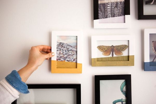 Now hang those dipped photos up! We created a salon style wall above a dresser you might have in your entryway.