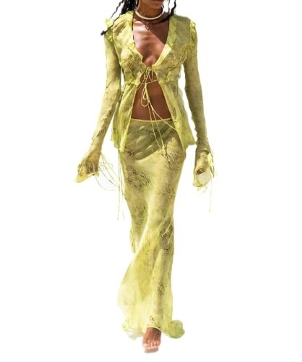 This Y2K Two Piece Long Skirt Set is so a hot girl summer trend you will effortlessly slide it into your summer wardrobe. It can be dressed up or down for any occasion.