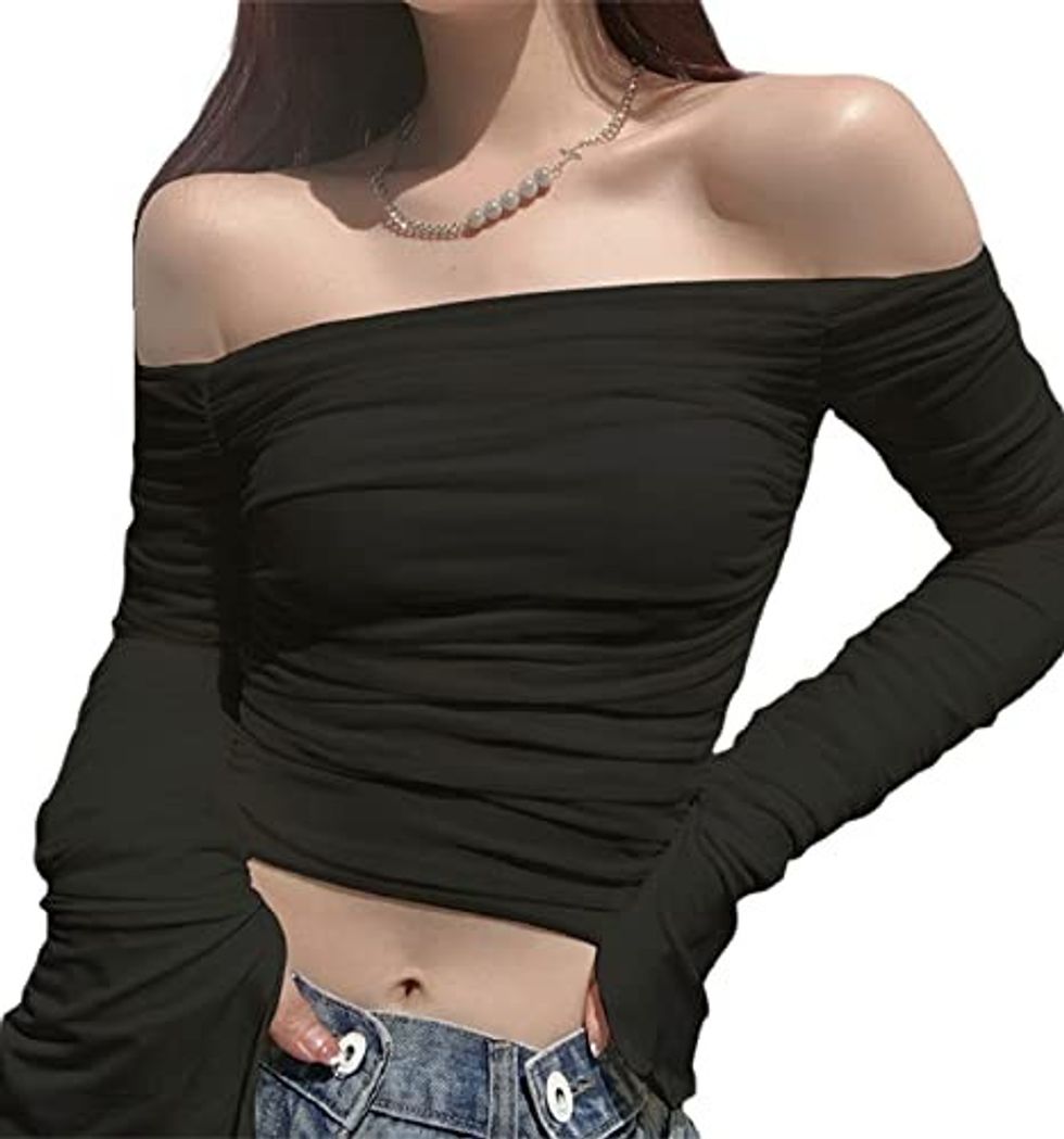 We feel the sleeves on this KMBANGI Cropped Off the Shoulder Top. It is such a solid retro streetwear vibe that it is a versatile addition to any summer wardrobe, perfect for creating a chic look that will turn heads and make you feel confident and glamorous.