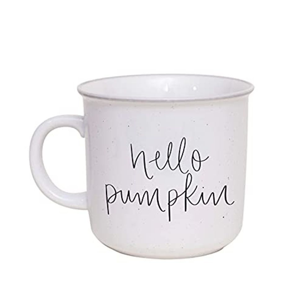 Sip on your morning coffee while basking in the feeling of fall with this "Hello Pumpkin" mug. Made with dishwasher and microwave safe ceramic, this campfire style mug just feels like a warm hug. You'll love the minimalist design and high quality — plus, who can ever have too many mugs?