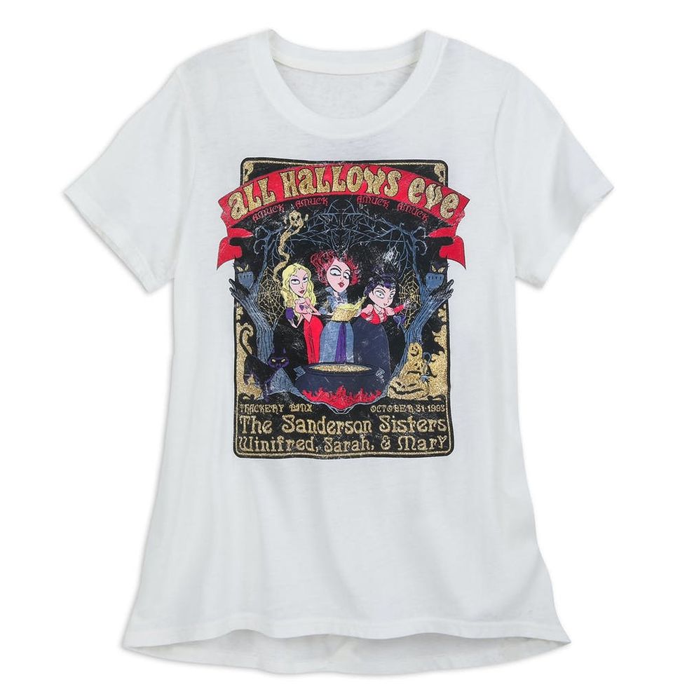 The eight-piece collection features a Hocus Pocus women’s tee ($27), a spirit jersey, various tanks and tees, a pin set, a mug, and even a journal to write down all your spells, in prices ranging from $15 to $60. It’s available now in the shopDisney online store, so you can celebrate Halloween all summer and fall.