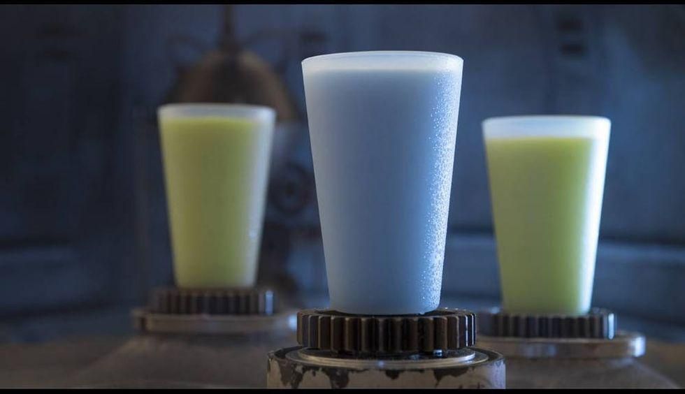 For a non-boozy option, you can order up blue or green milk from the Milk Stand. The iconic blue milk was first seen sipped by Luke Skywalker in Star Wars: Episode IV – A New Hope and the green milk made its debut in Star Wars: Episode VIII – The Last Jedi.