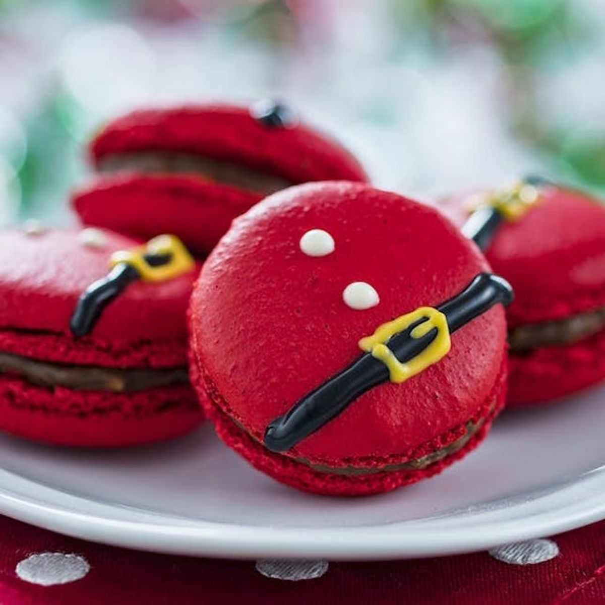 Santa Belt Macarons: All the way from the North Pole, it's a pack of adorable Santa Macarons! These almond macarons are stuffed with a hazelnut filling and detailed with Santa's belt and buttons. These treats are sold in a set of five at the BaseLine Tap House and Oasis Canteen at Hollywood Studios.