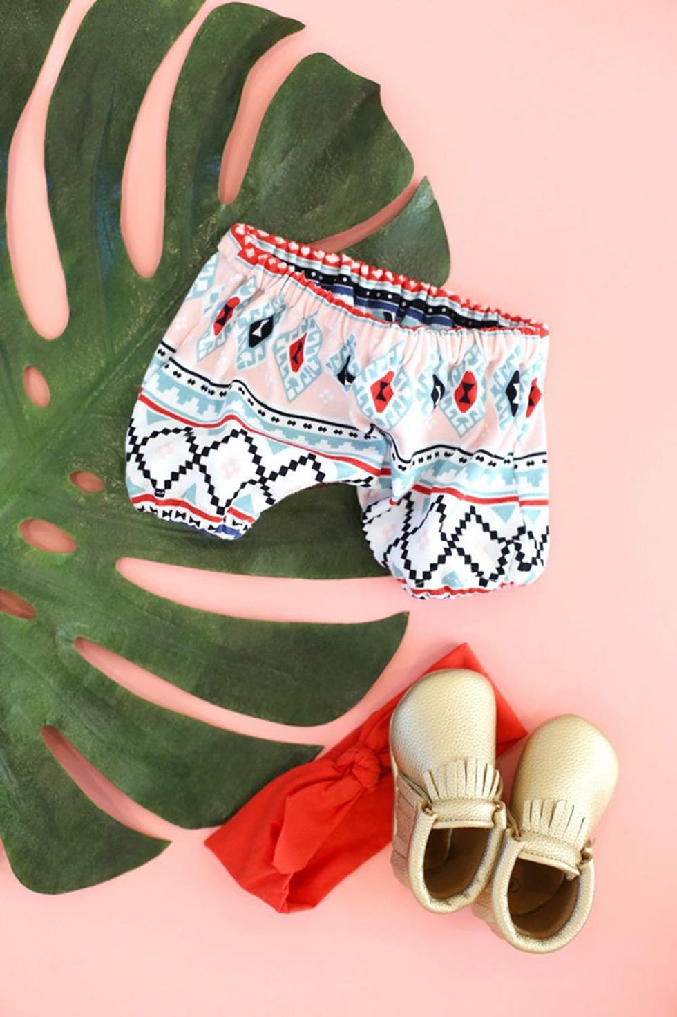 3. DIY Harem Bloomers: Were you prepared for how expensive kids clothes are? Given that they only wear them for a few weeks at a time, save yourself the pain at the register and make a few pairs of harem pants. (via Lovely Indeed)