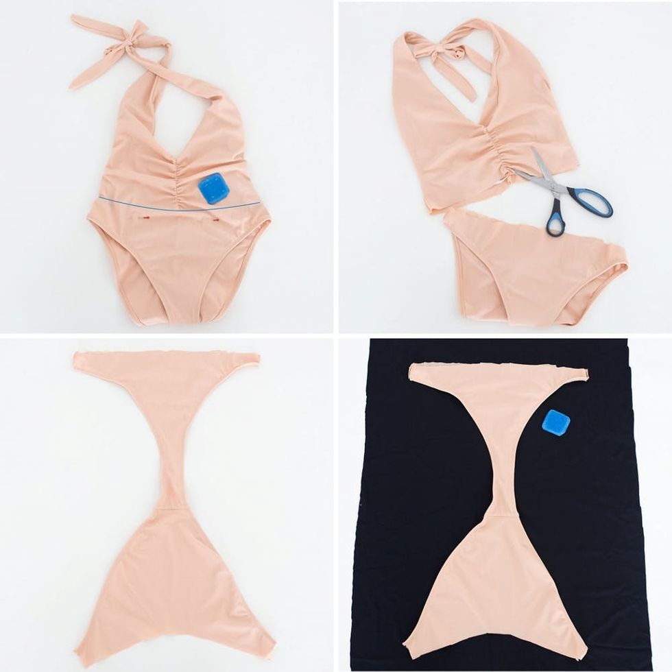 2. Cut the swimsuit in half, following the line.
