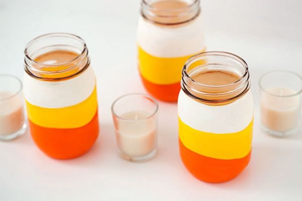3. Pull over your mason jar so that white is on top, yellow is in the middle, and orange is on the bottom, just like a candy corn!