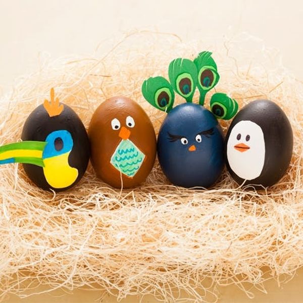 What came first, the chicken or the egg? Well, in this case it was the egg… and then we turned them into our four favorite birds. A toucan, an owl, a penguin and a peacock: an egg-ceptional bunch if you ask me! ;) What is super great about this Easter egg DIY is that the supplies we used for this transformation are SO basic: craft paint, card stock and Sharpies — no templates or fancy dye required!