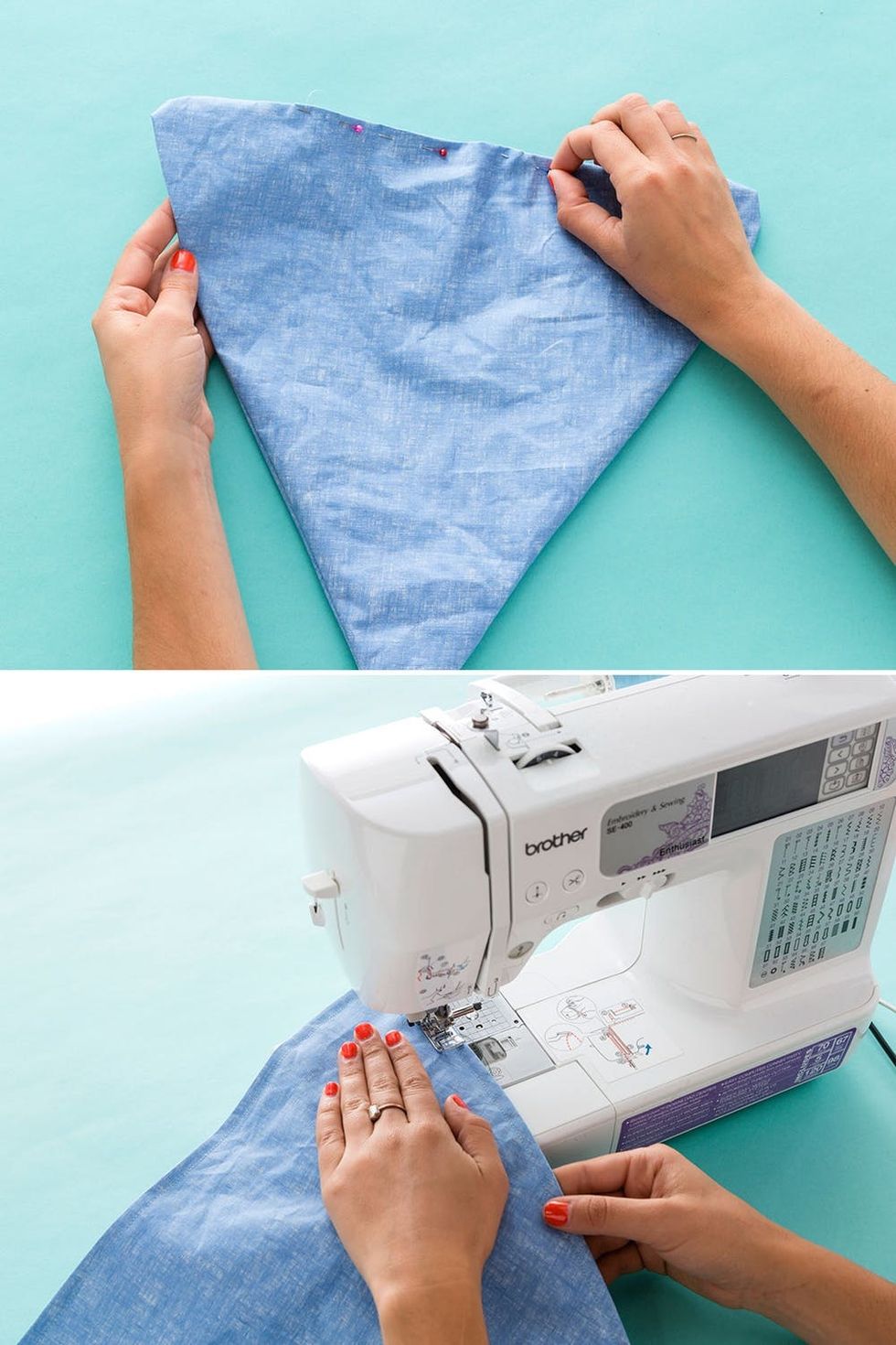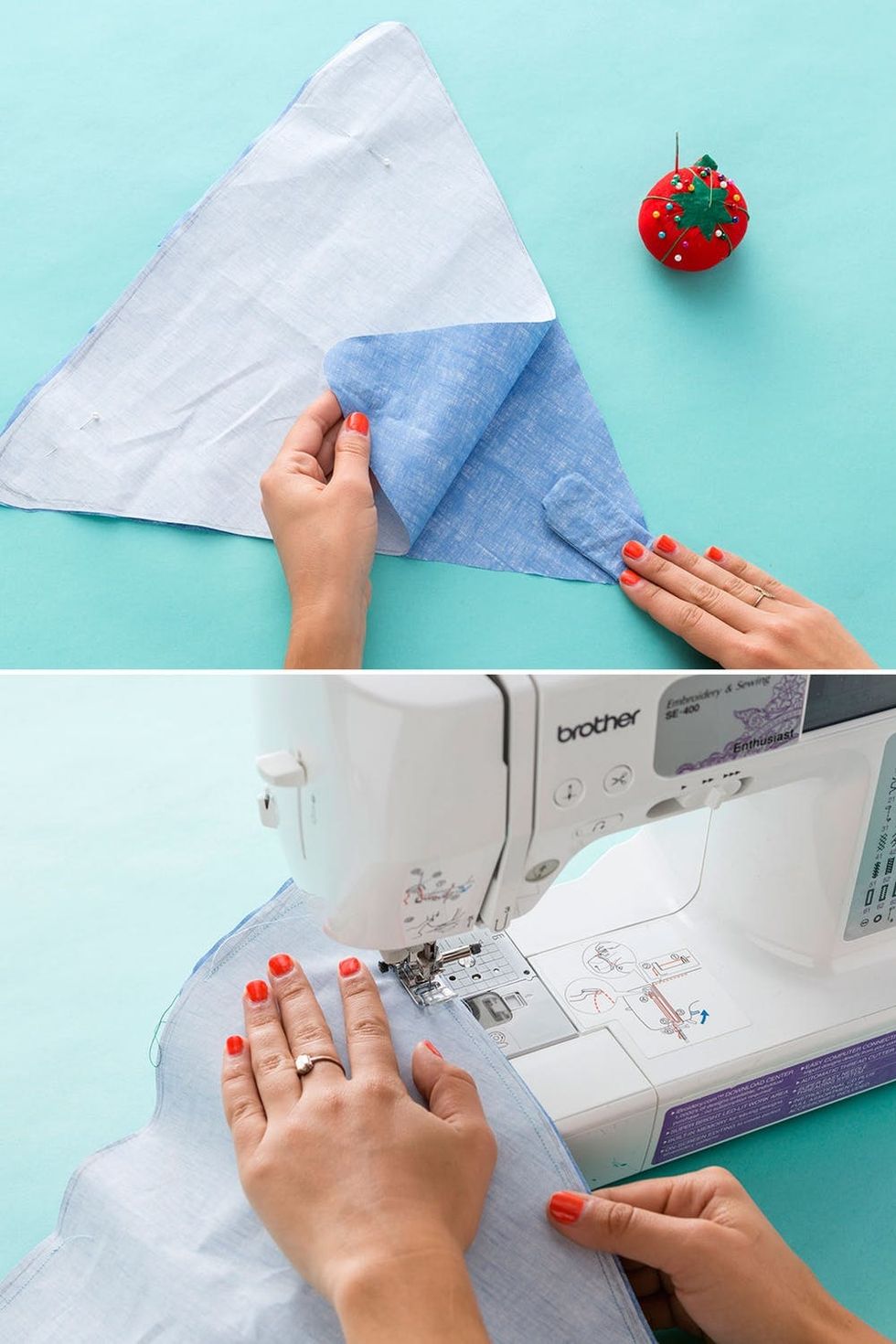 Turn right side out and pin the opening closed. Sew all the way around the outer edge.