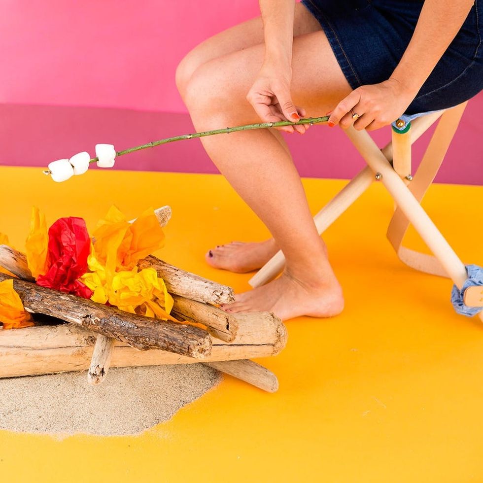 This camping stool is the perfect height for marshmallow roasting. Remember the key is to find a warm spot on the fire to slowly turn those marshmallows golden brown.