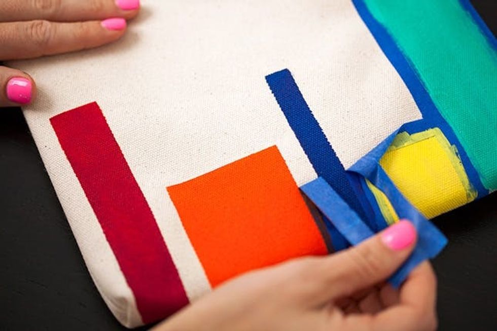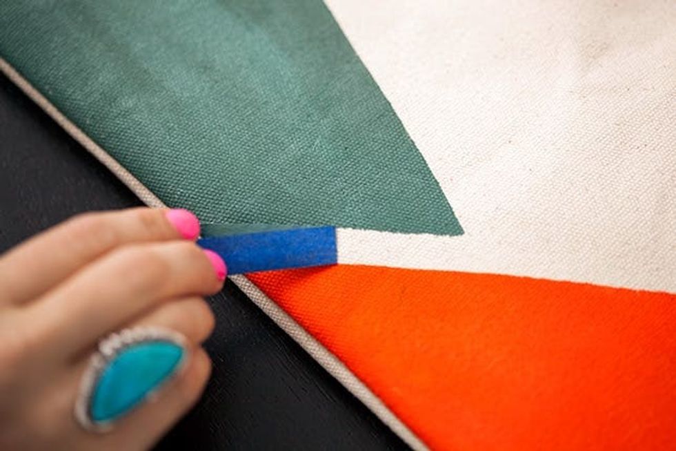 1. Either tape off your pattern or draw it on to the canvas sleeve. Remember that the tape will leave negative space, so if you want colors touching, you’ll have to draw the lines and paint along them.