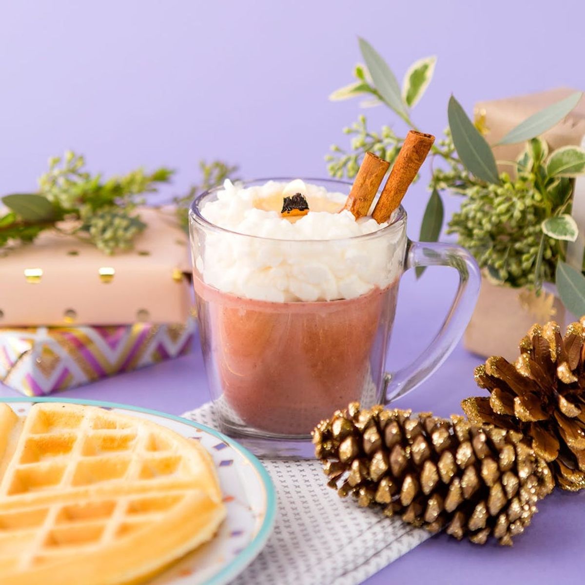 The colder months are here, and that means snuggling up inside with some of our favorite things, like blankets, movies, and this DIY Chai Tea candle. We decided to whip up the tastiest-looking candle for the holidays this year. Not only does it look amazing (everyone actually asked me what I was drinking and where I bought it, haha), but it also smells divine. We filled the candle with our favorite winter spices, but feel free to take it up a notch and add fragrance to the white wax whipped topping. Follow along below to learn how to make this sense-sational candle for the holidays.