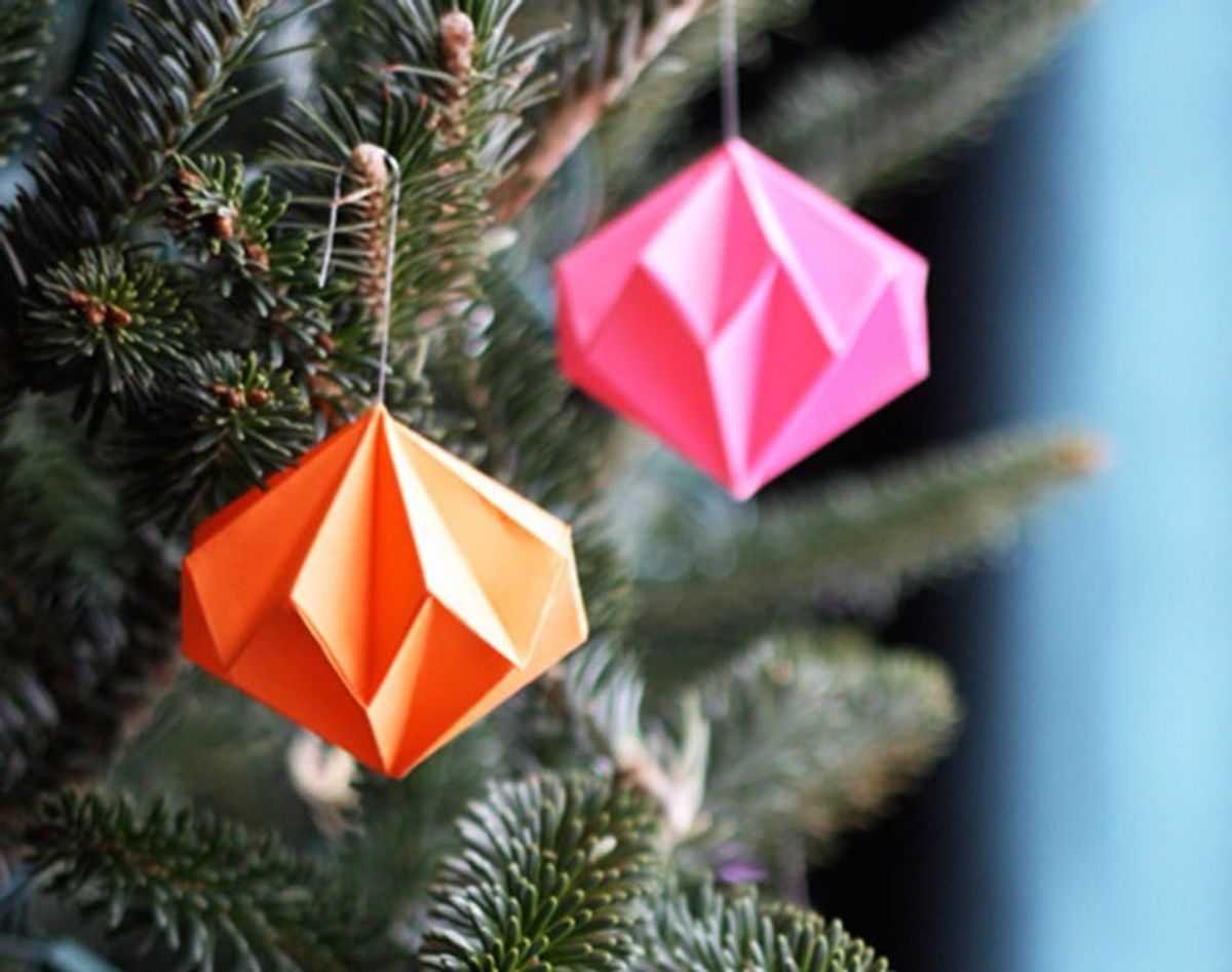9. Origami Diamonds: These bold yet elegant paper diamonds will bring a splash of color to that traditional spruce of yours. Or pair them with a white tree to make the colors really pop. (via How About Orange)