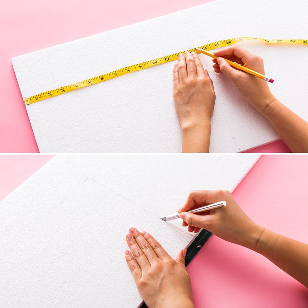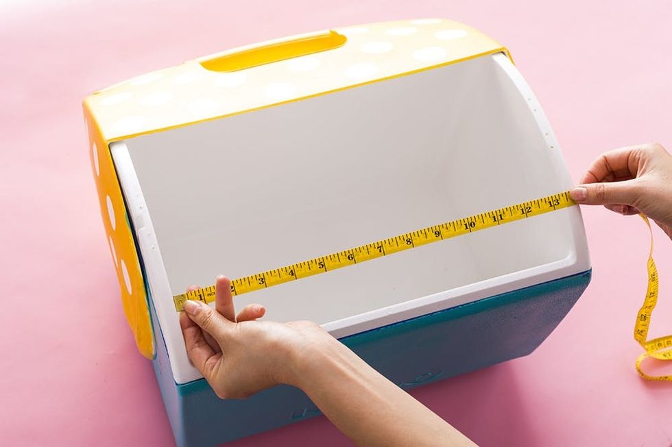 1. Measure the length and width of the inside of your cooler. Mark those measurements on styrofoam and cut out.