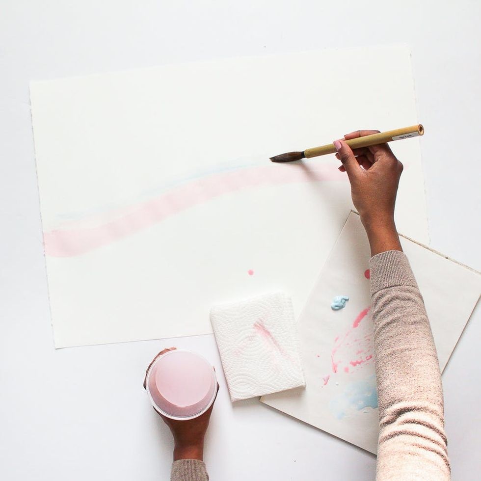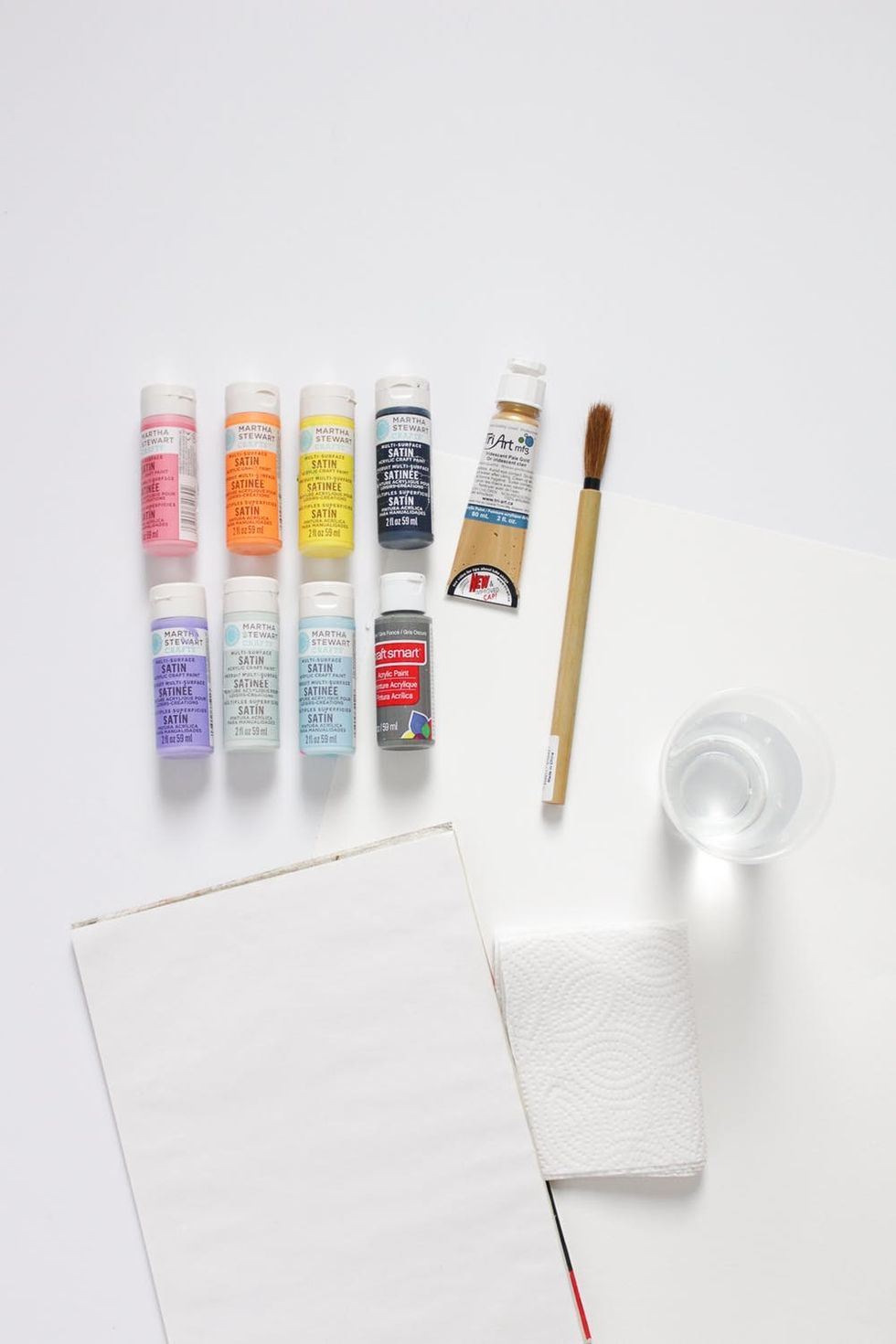 - acrylic paint: pink, lavender, blue, gray, yellow, gold