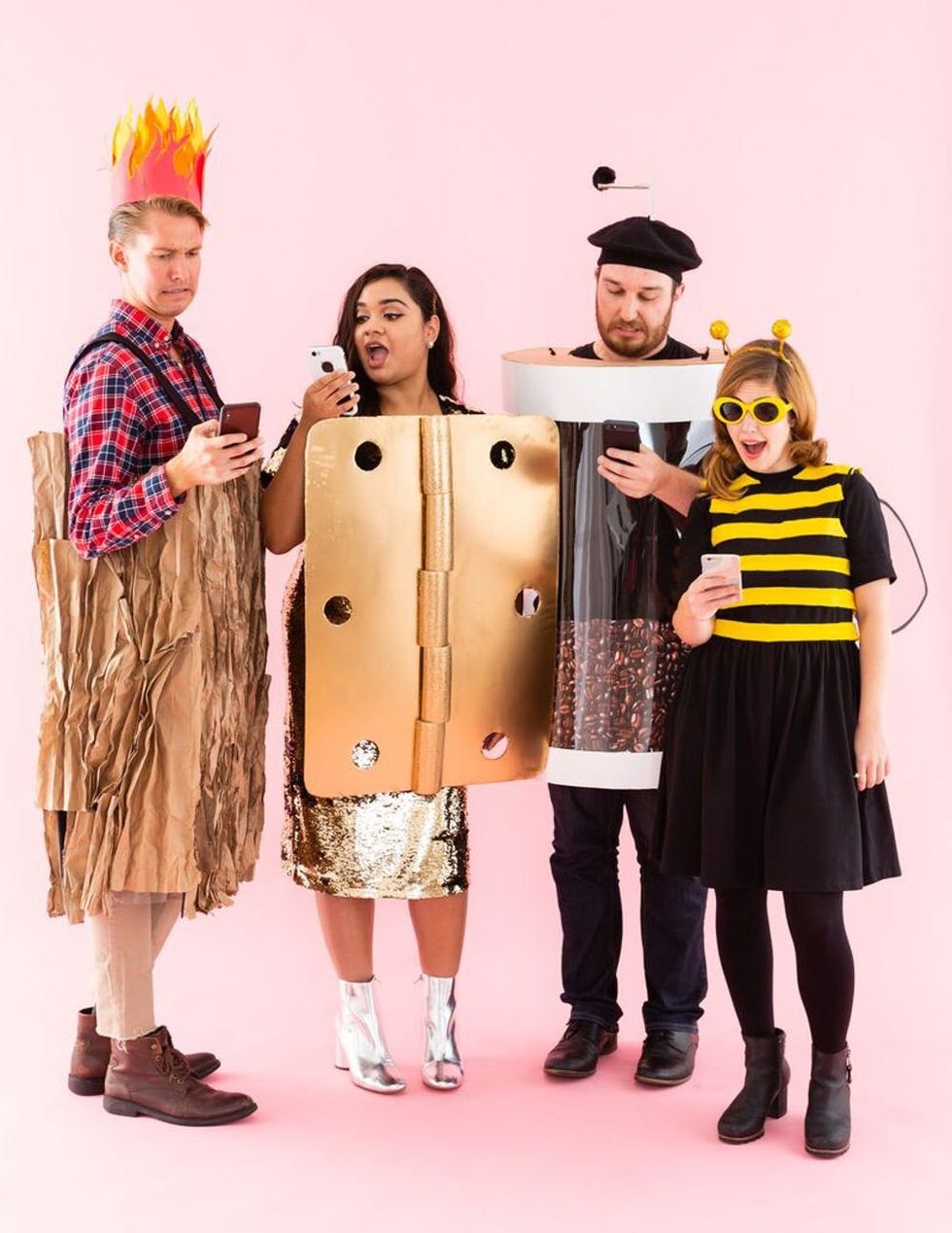 This Halloween season it’s time to get your creative juices flowing and DIY your own contest-winning costume. When you show up at the party dressed like an IRL dating app — in the form of a coffee grinder, a door hinge, or a hot, hot flame — it’ll be hard to keep track of how many right swipes you’ll be getting. Scroll on to learn how to create your own witty Hinge, Tinder, Grindr, and Bumble dating app costumes.