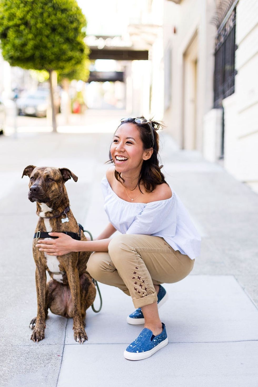 Of course we brought Jackie along for the street-style shots. However, she was more interested in the dogs down the street.
