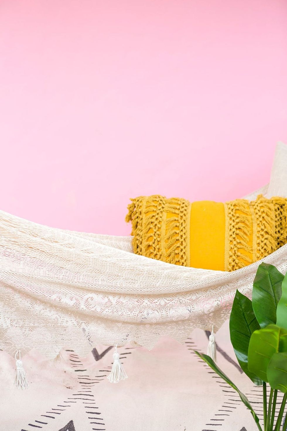 Move over, She Sheds — backyard oases are my new favorite spaces. You wanna know why? When done right, it’s like a mini vacation away from home! (Staycations, y’all!) I recently updated my small city space by adding an outdoor garden and great seating for guests. If my backyard was a little bigger, my next step would be to add a cozy zen area to cuddle up in the sun with a book. Now I don’t know about you, but I believe the best backyard accessory for cozy book time is a hammock! Follow along below to see how I created my dream hammock by turning an Amazon hammock into an Anthropologie wannabe.