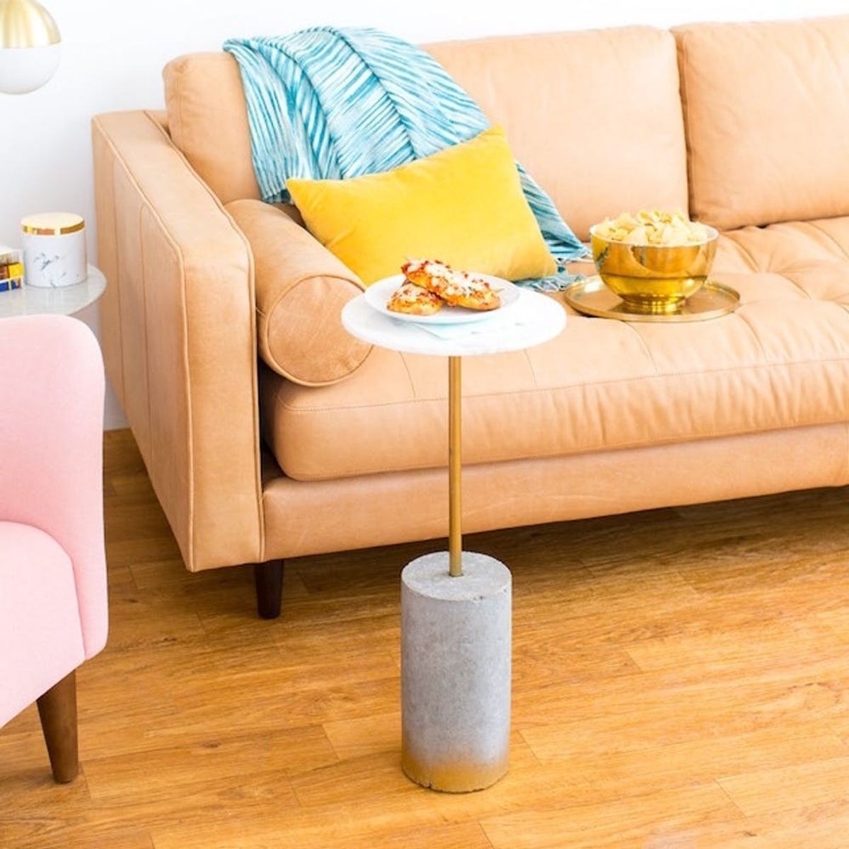 Shorter days = more cozy dinners on the couch. Whether you’re hosting a Netflix binge party or you’re looking for a slender table for your teeny living room, you can use Anthro’s Pendulum Side Table ($268) as inspiration to seriously brighten up your TV dinners. (via Sugar & Cloth)