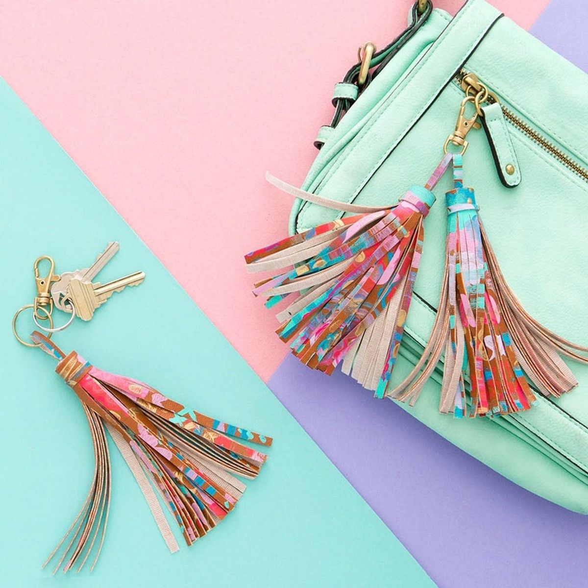 Shhh, don’t tell your BAEs, but this keychain can be made out of leather scraps from old DIY projects. Paint a multi-colored pattern, then fringe the leather to turn it into a cute tassel key chain.