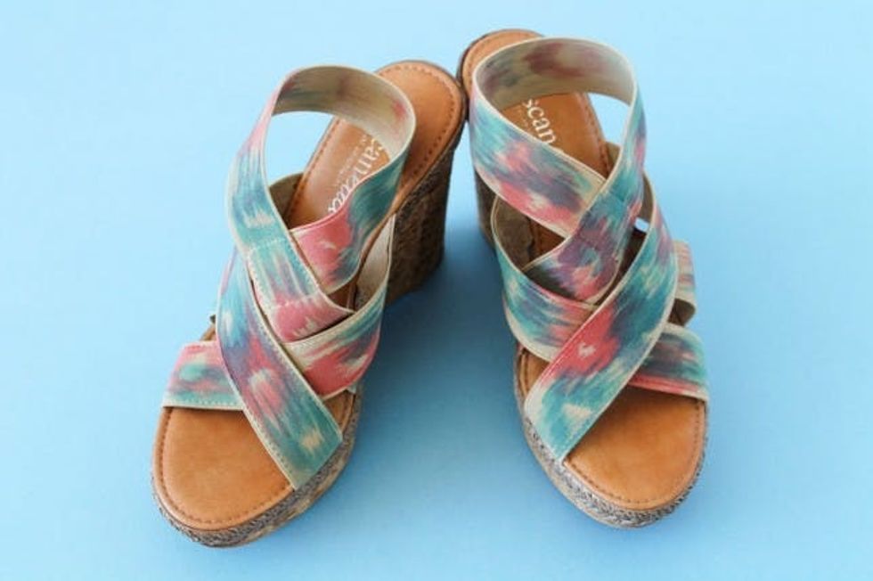 Remember that Sex and the City episode where Carrie registers for a single pair of shoes? Us too, and while we totally relate to the sentiment, we’re more about tricking out the kicks we already have. Last we shared some of our favorite ways fellow DIYers have updated their shoes in cool and creative ways. Now it’s time to serve up our own simple hack. Presenting DIY Ikat Wedges!