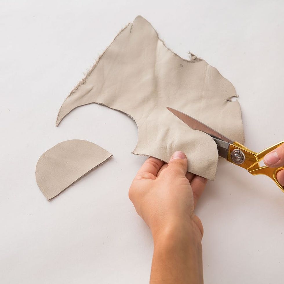 Cut out two half circles from nude leather. The diameter should be about three inches.