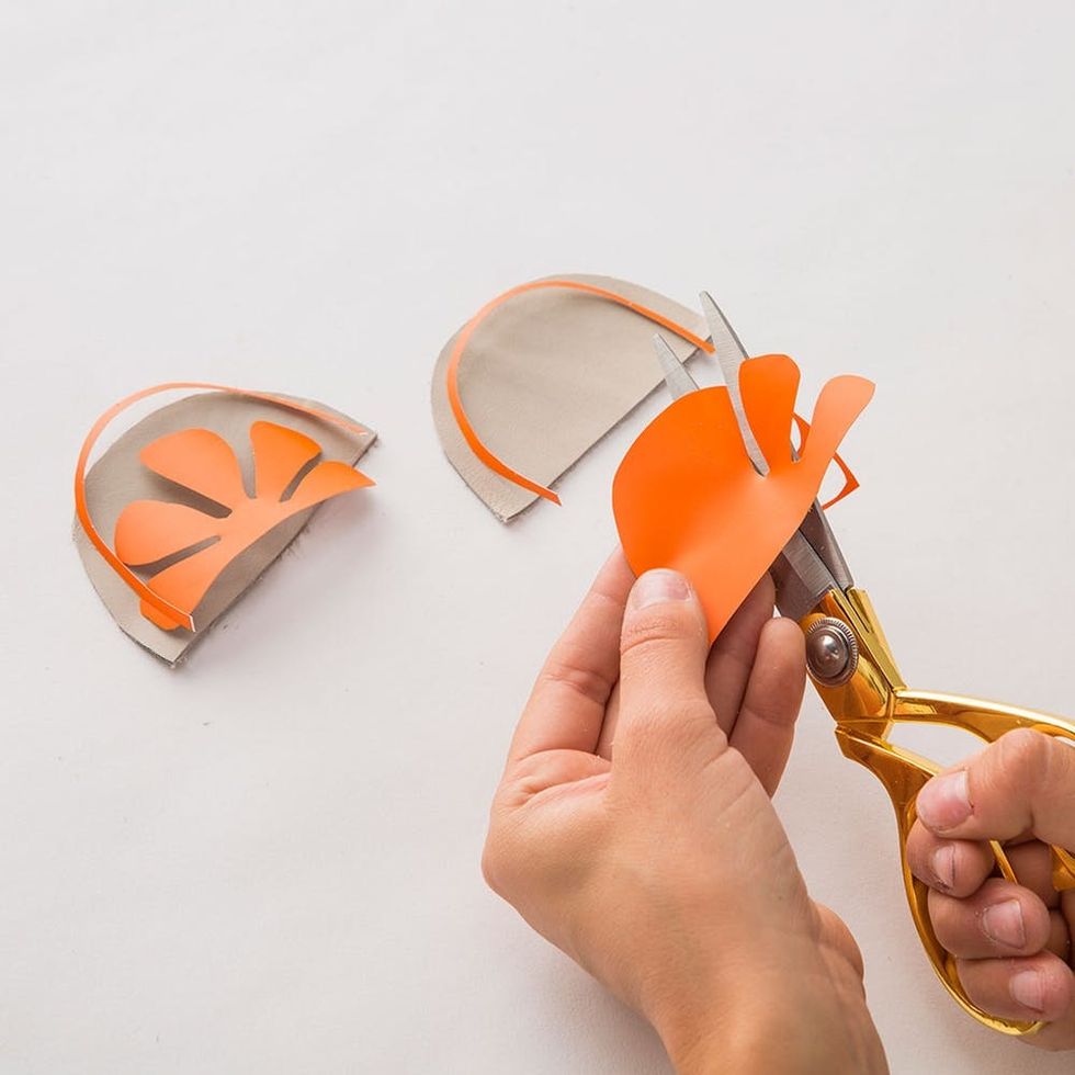 Trace your half circles on orange vinyl. Cut out an orange brim that is almost a hairline thin, and then a wavy orange slice inside.