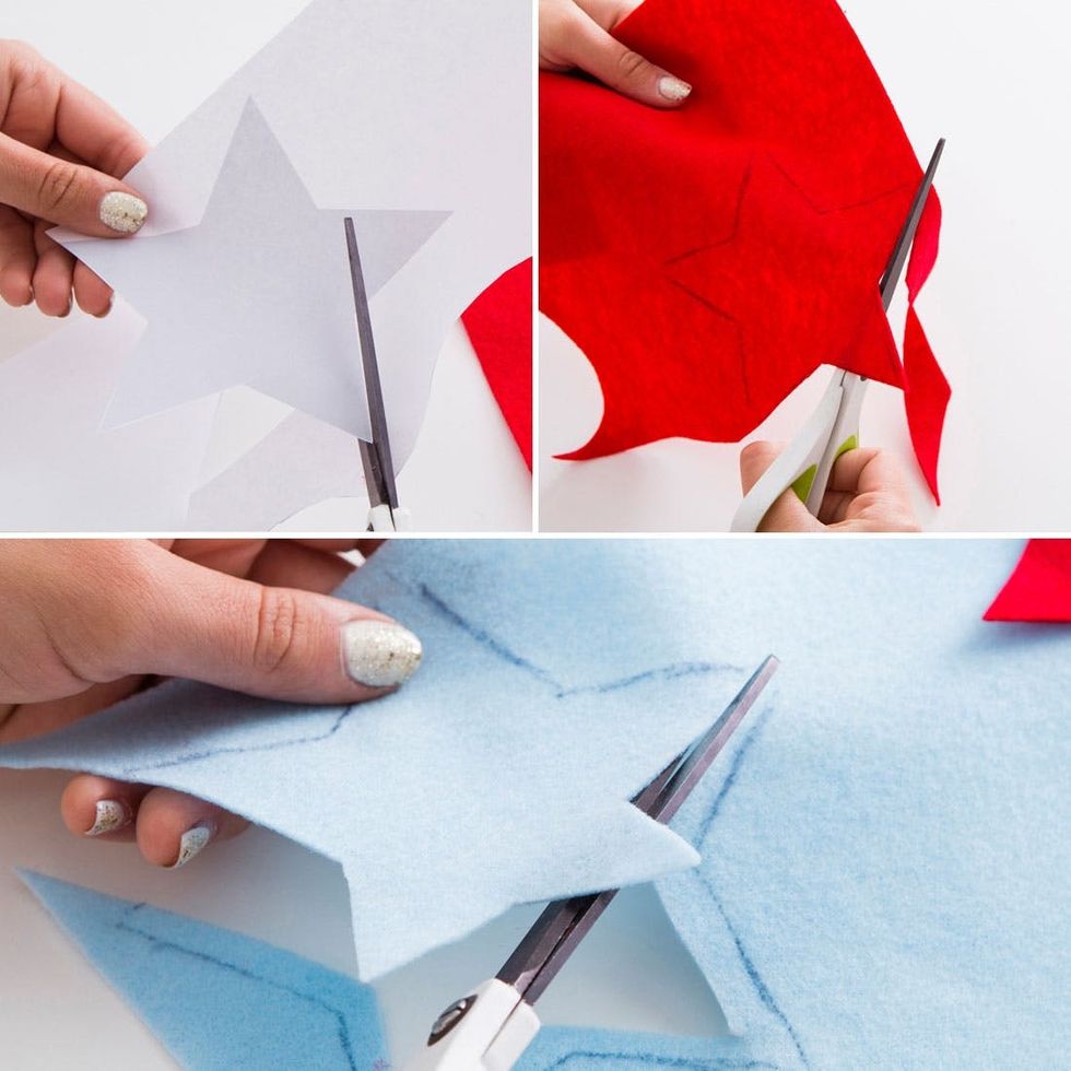 3. Trace the star template onto two different pieces of felt. Cut out one star slightly smaller than the other star.