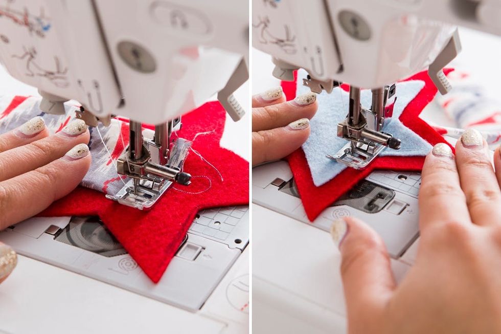 Sew the star onto the open end of the belt. Then place the smaller star on top and sew the perimeter.